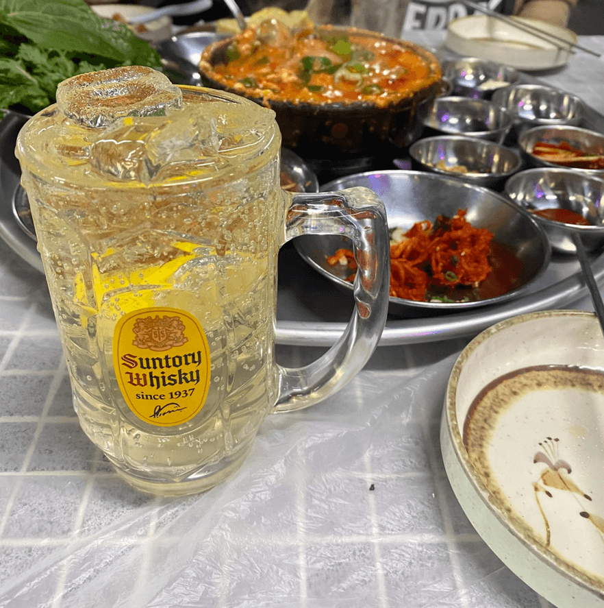짜글이 비주얼에 술을 뺄 수가 없어서 제가 좋아하는 하이볼 한잔 곁들였습니다.