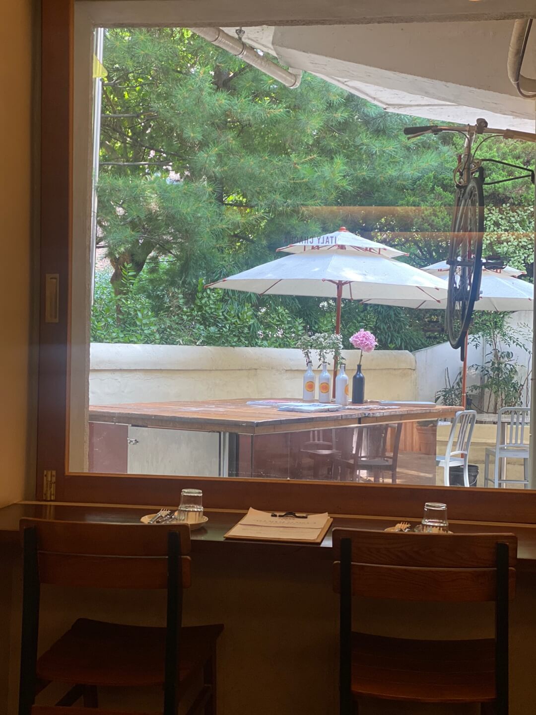 테이블에 앉았는데 창밖으로 보이는 바깥 모습입니다.