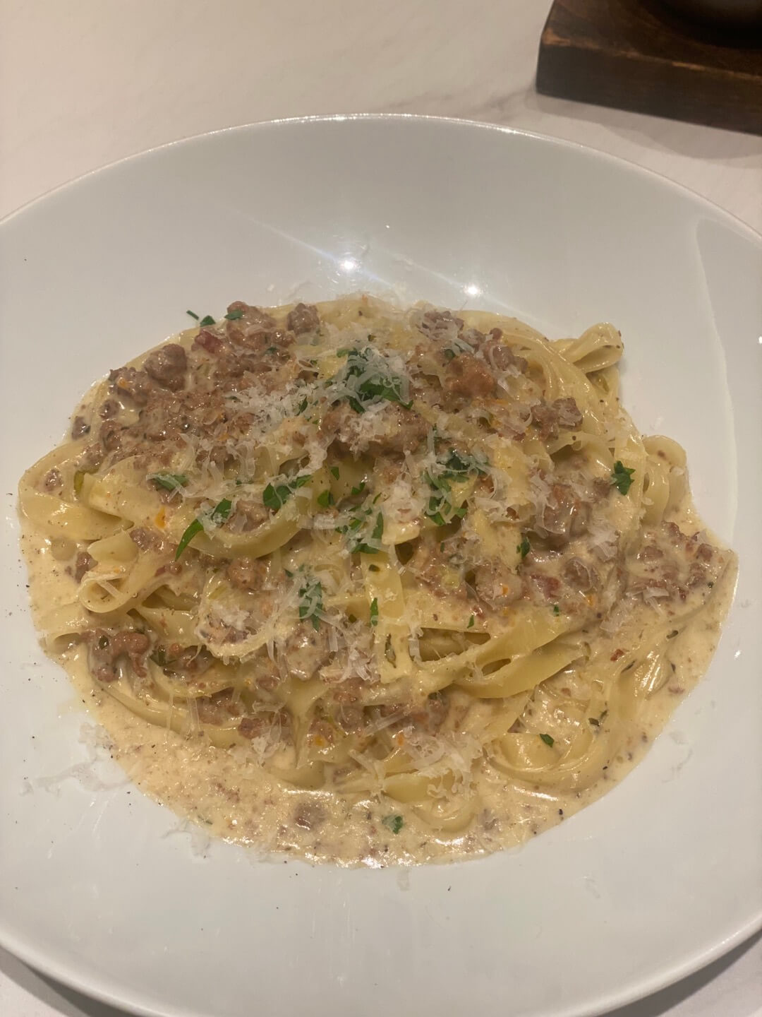 제가 시킨 메인 파스타는 화이트 라구 파스타인데요. 간도 잘 맞고 너무 느끼하지 않아 좋았습니다.