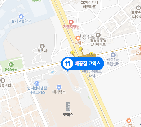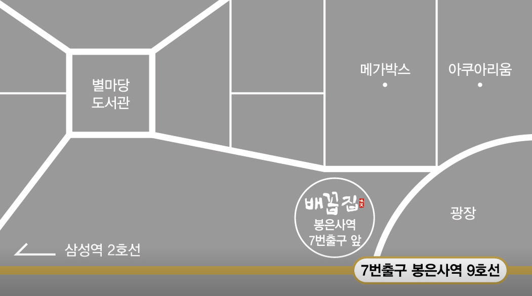 배꼽집 코엑스는 봉은사역 7번 출구로 올라오면 바로 보이는 곳에 위치해 있습니다.